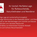 A Hohenschwangau kastély 3,1 km-re, a Füsseni Múzeum pedig területétől nem messze van a dohányzásmentes hoteltől. A külvárosi Ruchti - Zeit Fuer Mich területétől nagyjából egy 25 perces sétára eléri a Mittersee területét. Fedezze fel Füssen történelmi nevezetességeit, kezdve a 850 méterre található Staatsgalerie im Hohen Schloss galéria területével. A messziről érkezők számára, a Memmingen repülőtér 52 perces autóútra található.